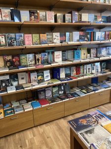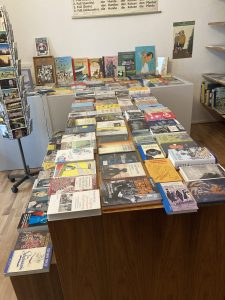 Hallo Berlin! Im Hauptstädtle, genauer gesagt im Osten des Bezirks Prenzlauer Berg, gibt es eine ganz besondere Buchhandlung mit einem ebenso besonderen Titel: Viel Gluck mit die Bücher. Betreiber ist der Verleger Peter Graf, bekannt durch seinen Verlag „Das kulturelle Gedächtnis“. Ins Sortiment nimmt er ausschließlich Titel aus unabhängigen Verlagen, die von den Verlagen selbst ausgewählt wurden. Es können Bücher anderer Verlage nicht bestellt werden, es gibt nur das, was da ist, aber das ist schon ganz schön weit gefächert. Zu finden sind hier auch Titel von danube books wie „Das Paprikaraumschiff“ von Sigrid Katharina Eismann, „Platte 317“ von Rayna Breuer, „Abstufung dreier Nuancen von Grau“ von Kristiane Kondrat sowie einige Bände aus der Lyrikreihe edition textfluss.