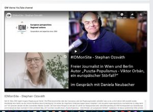 Darüber sprach Daniela Neubacher vom Wiener Institut für den Donauraum und Mitteleuropa (IDM) mit dem Journalisten Stephan Ozsváth. Der Sohn eines Ungarn ist seit über 25 Jahren als Radiojournalist aktiv, berichtete jahrelang als ARD-Korrespondent aus Südosteuropa und ist derzeit als freier Journalist in Wien und Berlin tätig. 2017 erschien Ozsváths Buch „Puszta-Populismus – Viktor Orbán, ein europäischer Störfall?“ im danube books Verlag. Spätestens mit dieser ausführlichen Kritik sicherte er sich einen Spitzenplatz auf der schwarzen Liste „liberaler“ Meinungsmacher in Ungarn. Daniela Neubacher (IDM) spricht mit Ozsváth über seine persönlichen Eindrücke von den Entwicklungen in Ungarn und fragt, was es braucht, um unabhängige Berichterstattung in Ungarn zu fördern.